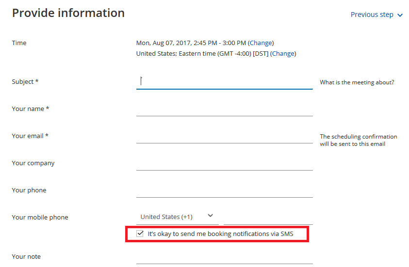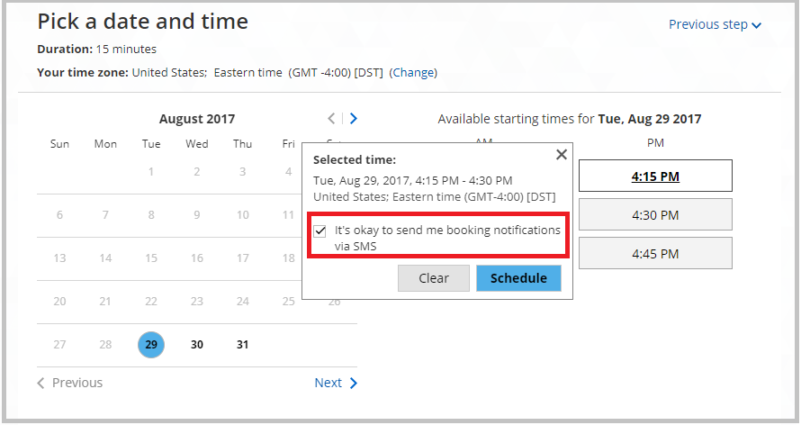 Figure 4: Opt-in to receive booking notifications via SMS