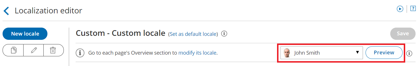 Figure 4: Locale Preview buttonNote Previewing a locale does not apply the locale to the page.