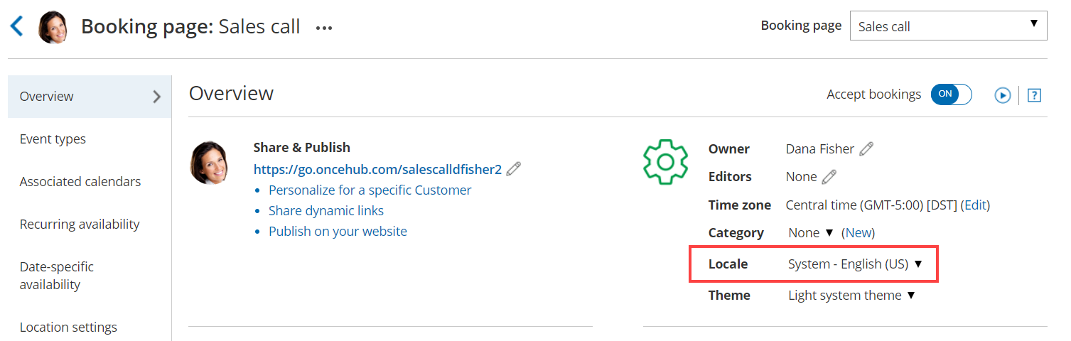 In the Booking page Overview section, select your edited System locale or your Custom locale (Figure 3).