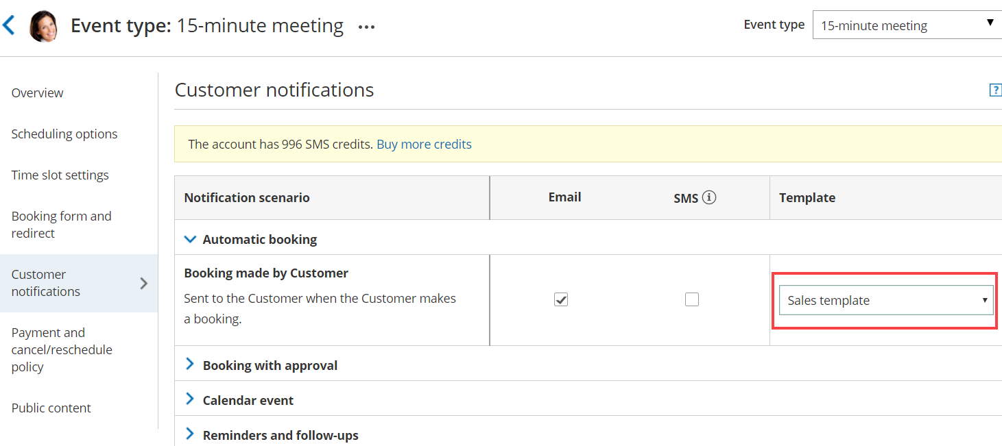 - That you are sending emails and SMS notifications for the required booking notifications.