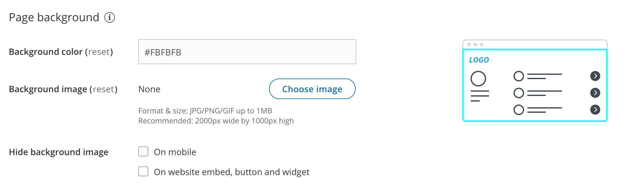 Hide background image: You may want to hide the background image on mobile devices or when your Booking page is integrated into your website.