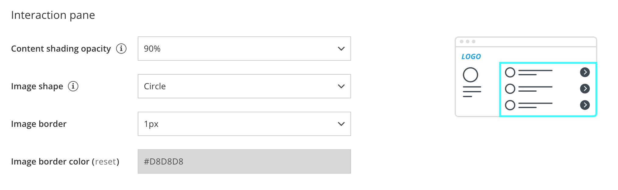 Figure 3: Interaction pane properties
