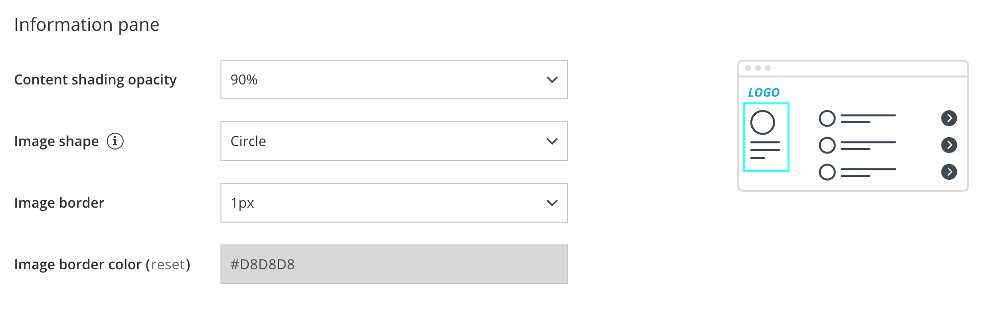 - Content shading opacity: Determine the opacity to optimize the readability of text over your background image or background color.