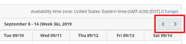 To see previous or future weeks in the grid, click the arrows at the top right corner (Figure 4).