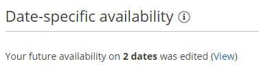 Your Recurring availability weekly pattern will serve as a basis for your Date-specific availability. Any changes that you make in your Date-specific availability will apply to the edited days only. Date-specific availability will always override your Recurring availability on those dates.