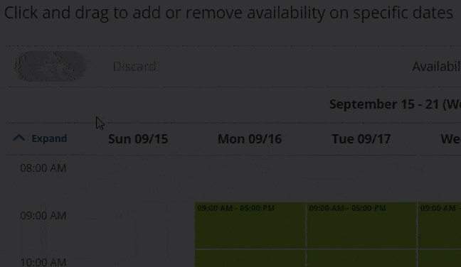 - Reduce availability: Use Date-specific availability to block parts of your Recurring availability. For example, you normally work Mon-Fri as a repeating pattern, but you need to block off two specific dates due to a business trip. You could remove availability for those two dates on the Date-specific availability calendar.