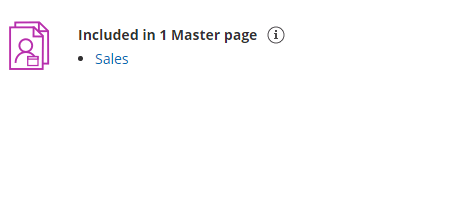 Booking pages can be included in Master pages to create a single point of access for your Customers. Use the list in this section to review the Master pages that include this Booking page. To edit a Master page, click on it in this list to navigate to it.