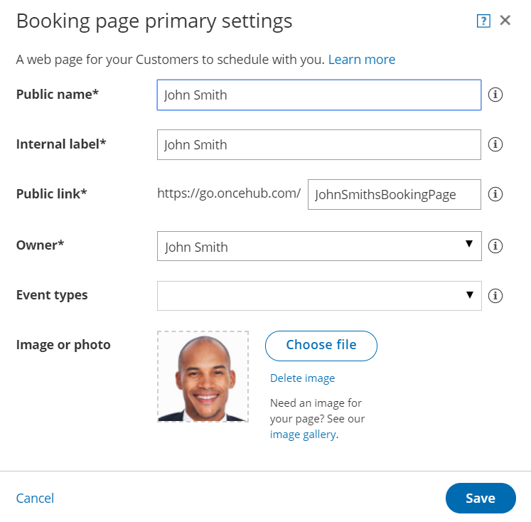 Public link: This is your page link that your Customers can use to schedule bookings with you. Learn more about Booking page links