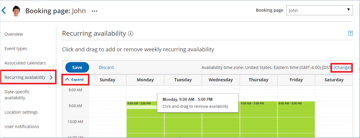 If you have exceptions to your Recurring availability, you can use Date-specific availability to edit your availability without changing your weekly pattern. Date-specific availability overrides Recurring availability, and can be used to reduce or increase your availability.