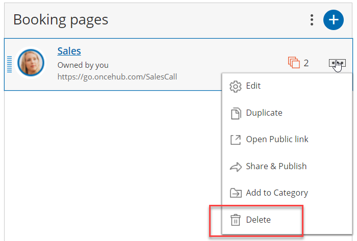 Alternatively, you can completely delete the Booking page by going to Booking pages in the bar on the left, clicking the action menu
