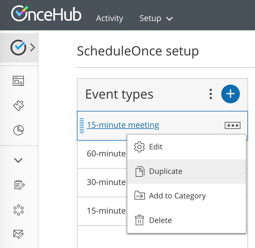 Duplicating Booking pages or Event types can save precious time for you when you’re setting up and maintaining your OnceHub app. Duplication instantly clones all the settings associated with Event types, including images.