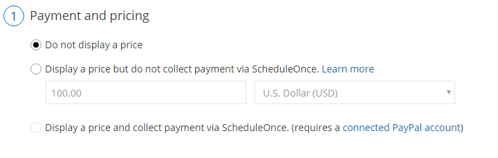 In the Payment and pricing step, select Do not display a price (Figure 2).