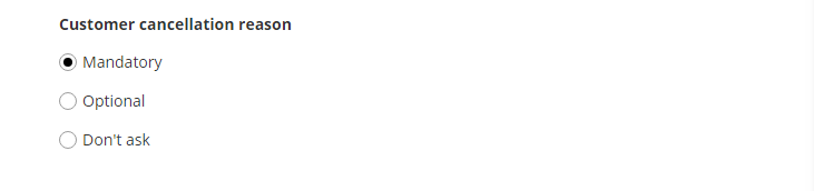 Finally, in the Cancellation policy step you can also choose to ask your Customers to give you a cancellation reason (see Figure 4). This question will be displayed on the Customer Cancel/reschedule page. You can choose to make the cancellation reason Mandatory, Optional, or choose not to display the field at all by selecting Don’t ask.