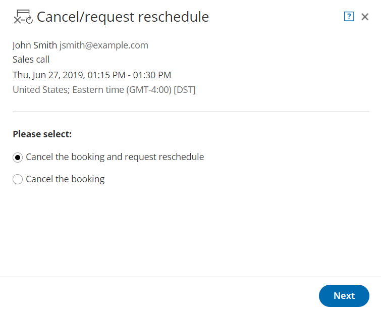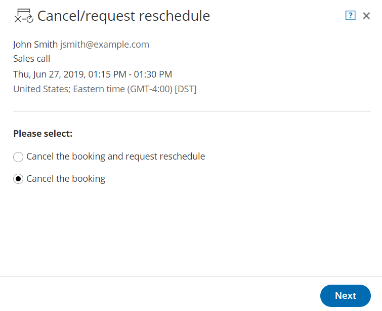 - The original booking will be canceled and the Customer will receive an email notification, along with the Booking page Owner and any additional stakeholders. Learn more about notification scenarios