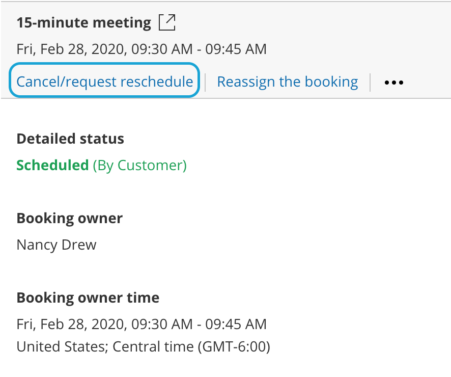 - In the Details pane, click the Cancel/request reschedule button (Figure 1).