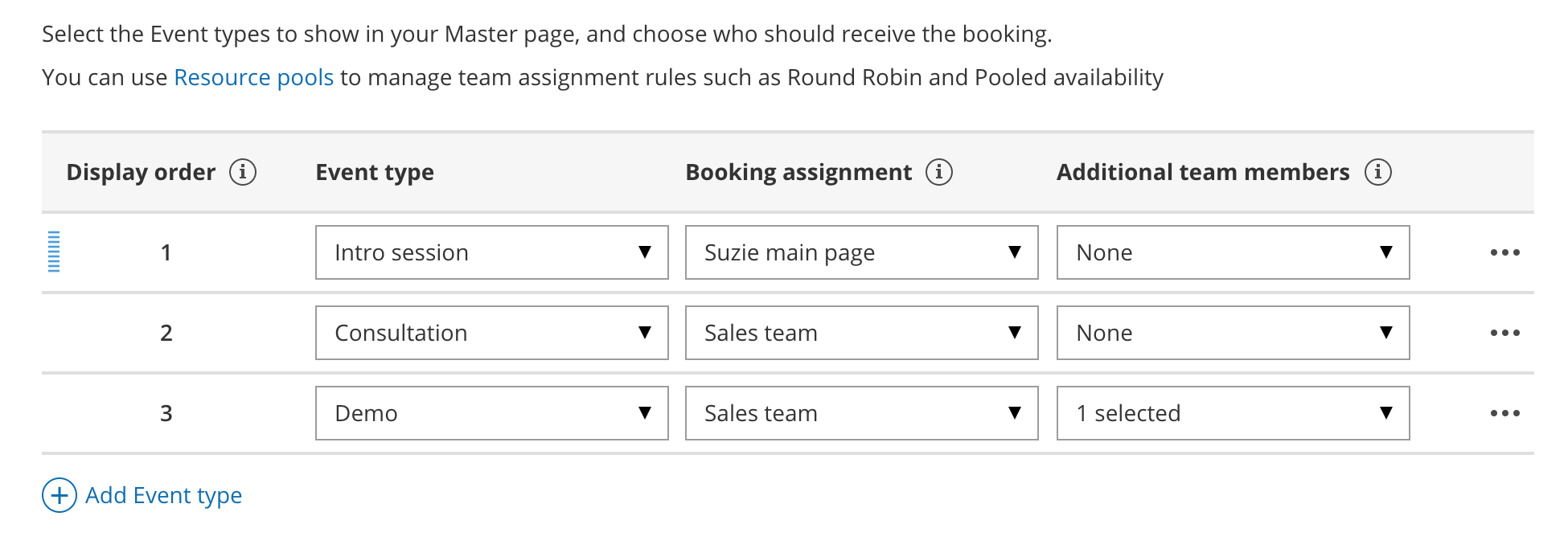 NoteThe existing associations between Booking pages and Event types do not affect choosing an Additional team member. Any Booking page can be selected as an Additional team member to participate in your Panel meeting.
