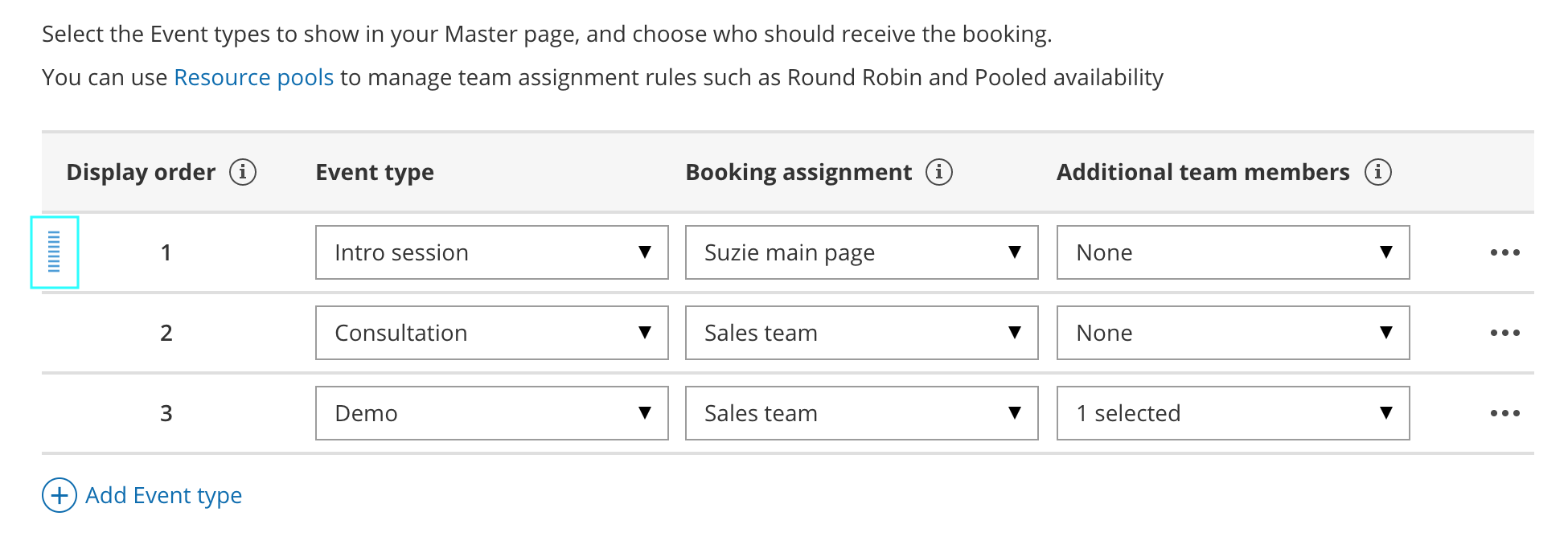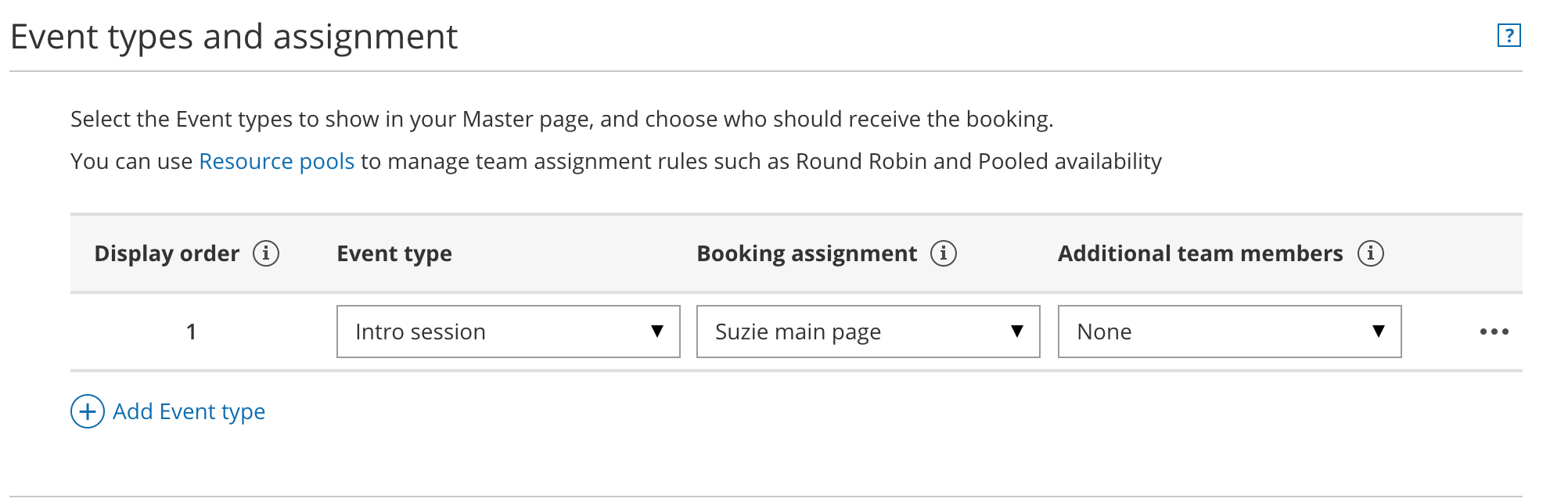 Next, use the Booking assignment drop-down to select which Resource pool should provide that Event type.