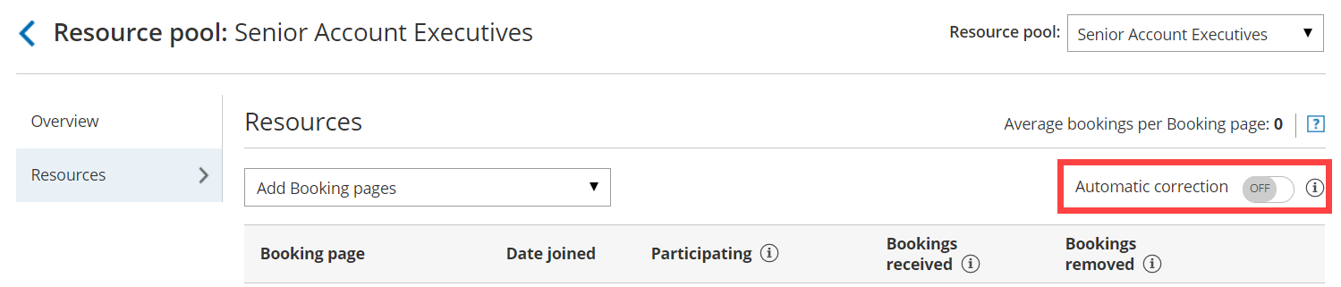 The Automatic correction distribution algorithm is turned ON by default for all new Resource pools that use Round robin distribution. If for any reason you would like to stop compensating for bookings that were removed, follow the steps below to turn Automatic correction off.