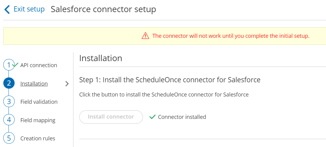 Return to OnceHub and reload the page, then go back to the Installation tab. You will see that the connector is now installed (Figure 4).