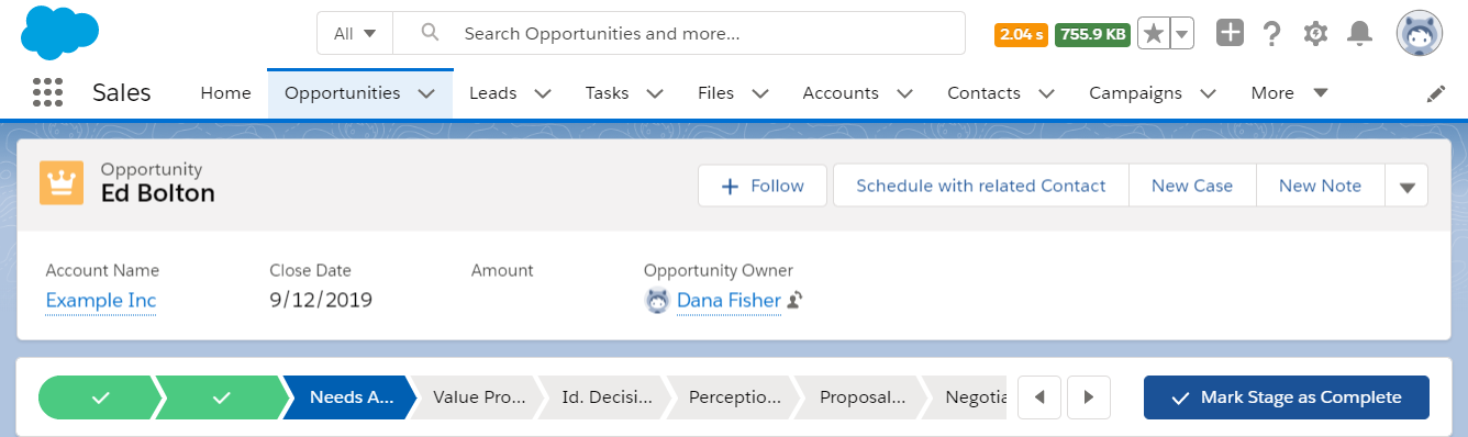 Section titled “Requirements”To add the Schedule with related Contact button to the Opportunity Page layouts in Salesforce, you will need: