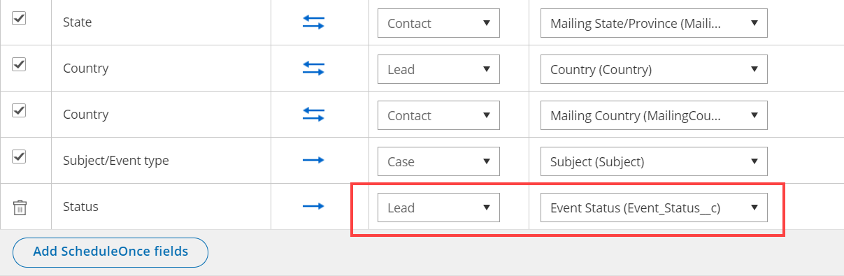 - Map the OnceHub Status field to the Lead: Event Status field.