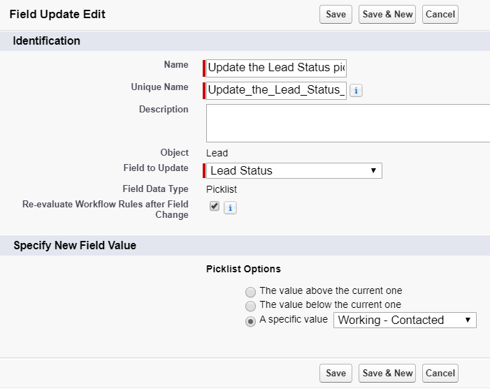- Unique name: Update_the_Lead_Status_picklist