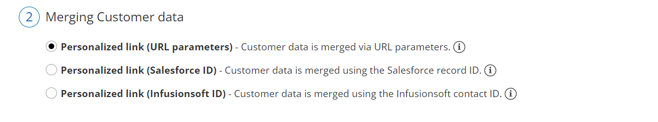 In the Customer data step (Figure 2), select Personalized link (URL parameters).
