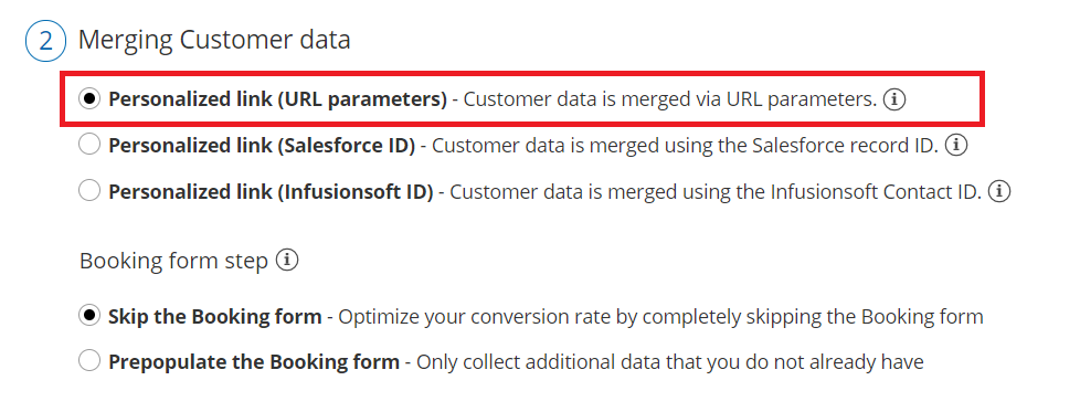 NoteFor security and privacy reasons, using CRM record IDs to skip or pre-populate the Booking form is not compatible with collecting data from an embedded Booking page or redirecting booking confirmation data.