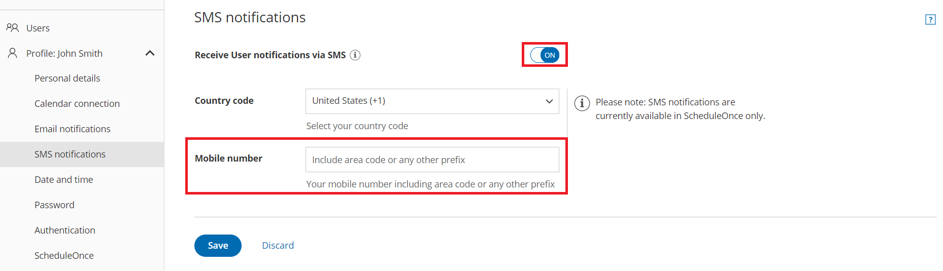 Ensure that Receive User notifications via SMS is toggled ON.