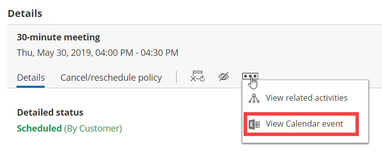 In OnceHub, you can also select the activity in the Activity stream, then click the action menu (three dots) in the right-hand pane and select View Calendar event (Figure 1).