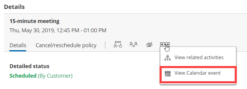 In OnceHub, you can also select the activity in the Activity stream, then click the action menu (three dots) in the right-hand pane and select View Calendar event (Figure 1).