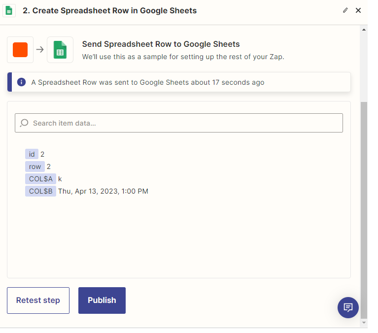 Test the Action step by following the instructions. Once you are done testing, you can either add another step or click Finish to complete the Zap.