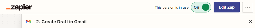 Off: The Zap is complete but inactive. Turn on to use this Zap.