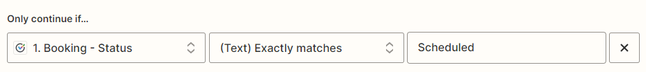 NoteYou can add a Filter step to more accurately define when to trigger this Zap. For example, you can define a filter that states only specific booking events (e.g. “Scheduled” and “Rescheduled”) or specific Bookings pages will trigger the Zap. Learn more about adding a Filter step in Zapier