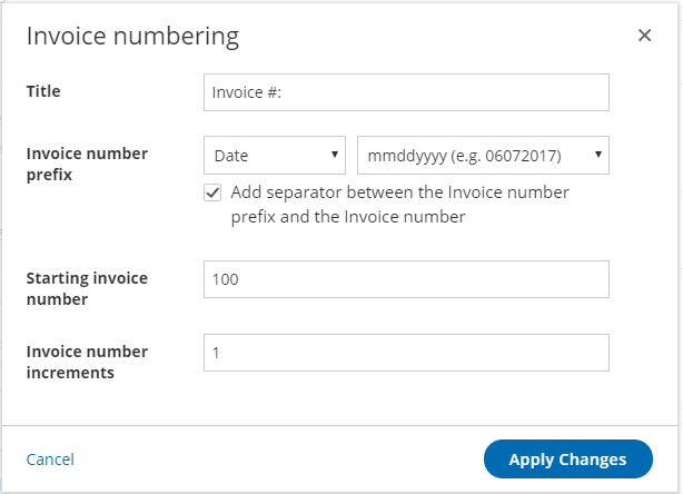 - Invoice increments: You can set the increment in which invoice numbers will be generated. The invoice increment can be set between 1 and 10.