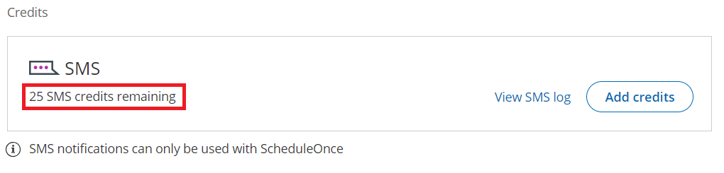 - OnceHub Administrators will receive an alert via the Notification center and via email when the SMS balance reaches 25% of the last SMS credits purchase and when the balance reaches zero.